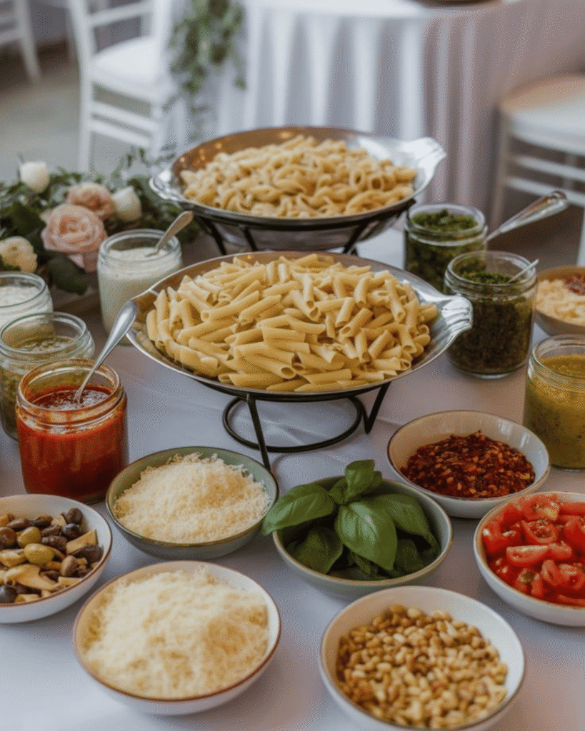 For bigger events, pasta buffet catering is one of the most cost-effective Italian catering options. A pasta buffet allows guests to serve themselves while enjoying a variety of Italian dishes.